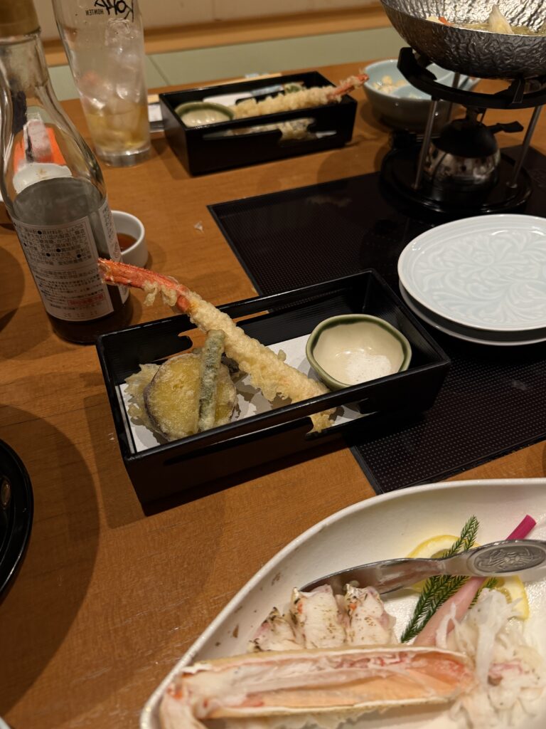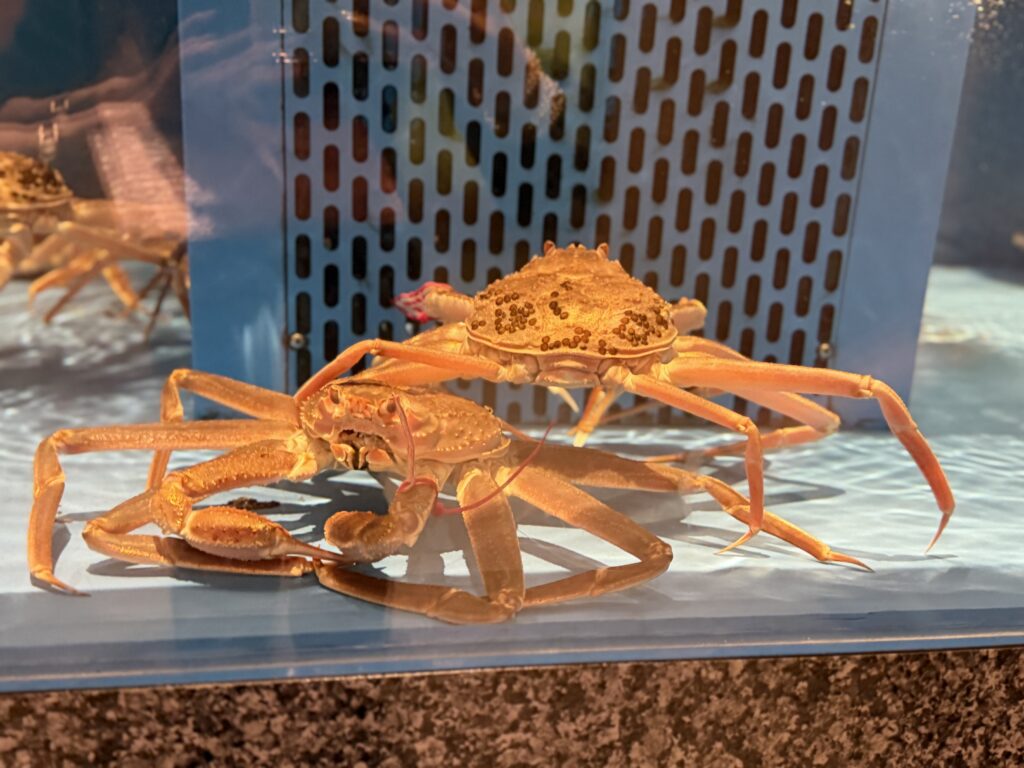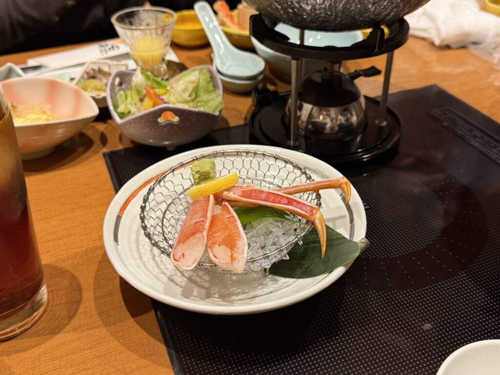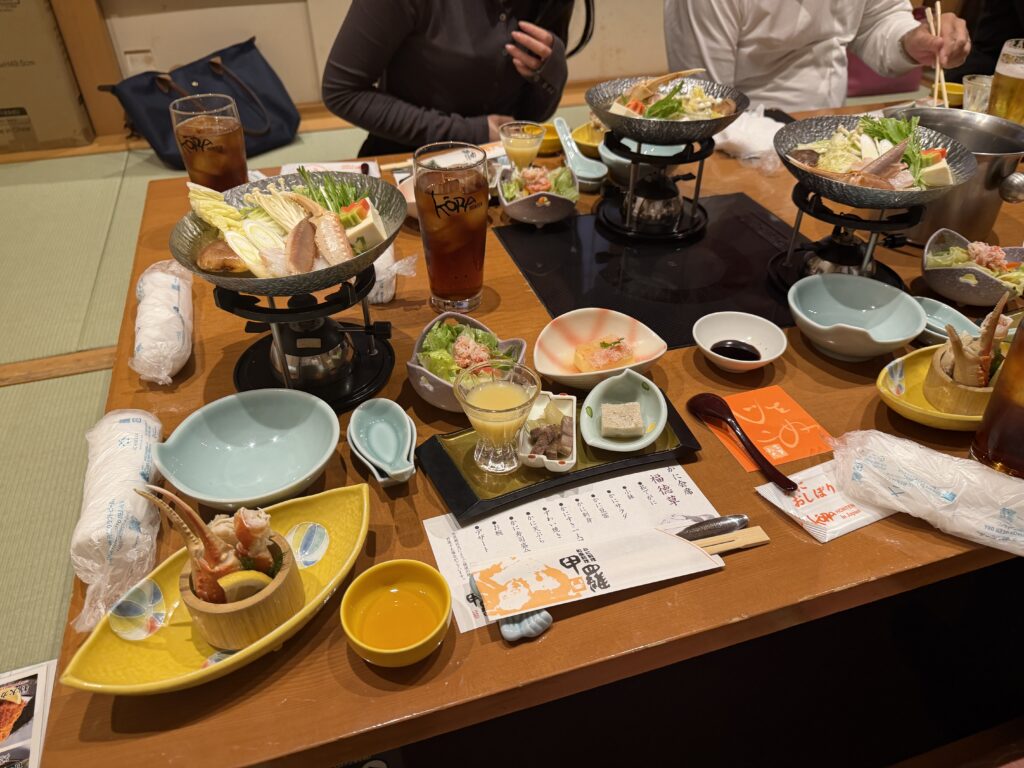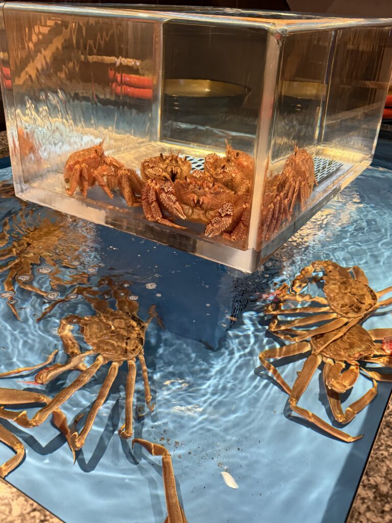 お店に入ると大きな生け簀があり、 新鮮なさばきたてのカニのフルコース料理でテーブルが埋め尽くされました!
