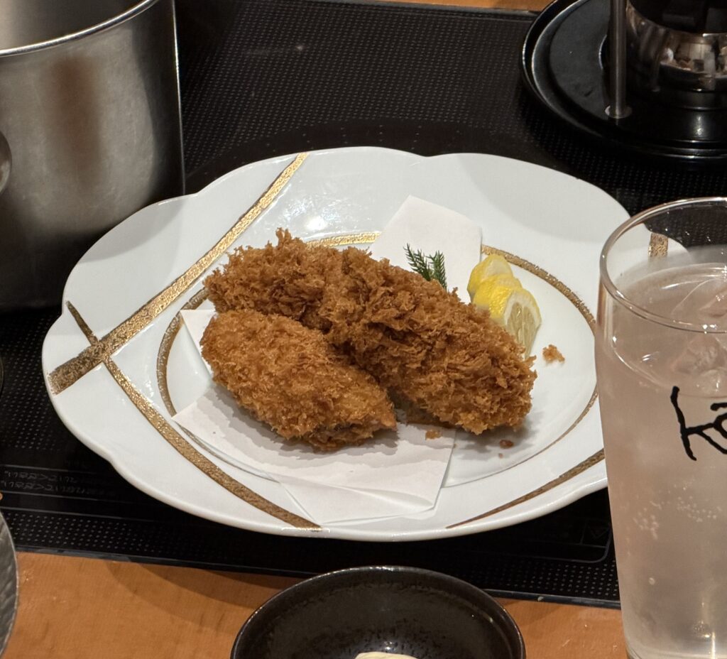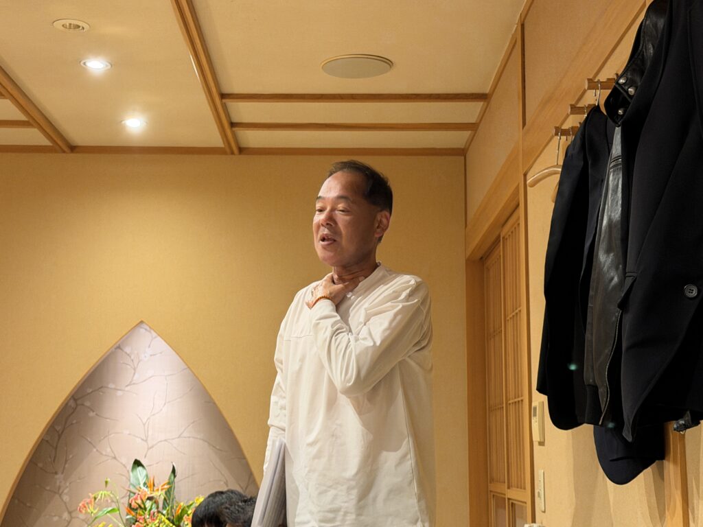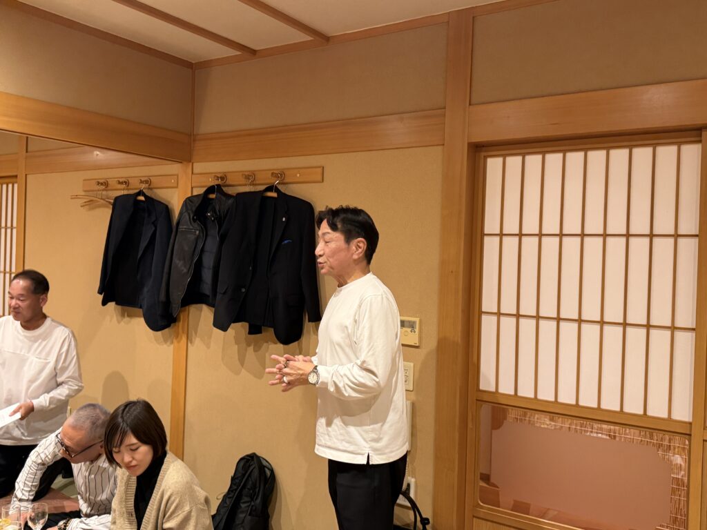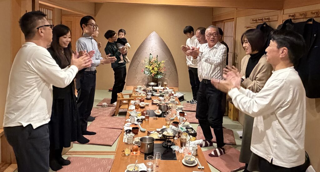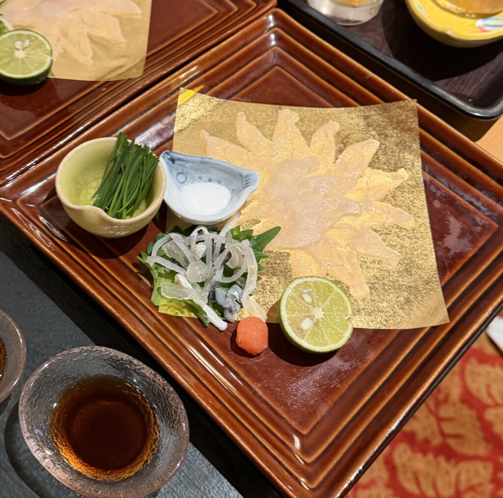 また社長のご厚意でふぐ刺しや大ぶりのカキフライなども追加され 美味しい料理とお酒に場も盛り上がります。