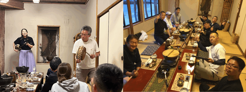 夕食は鍋を囲みながら、島唄ライブを聞かせて頂きました。