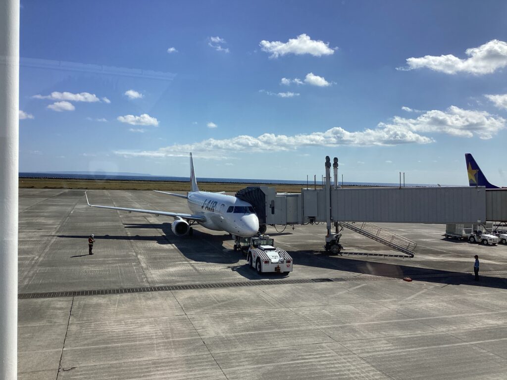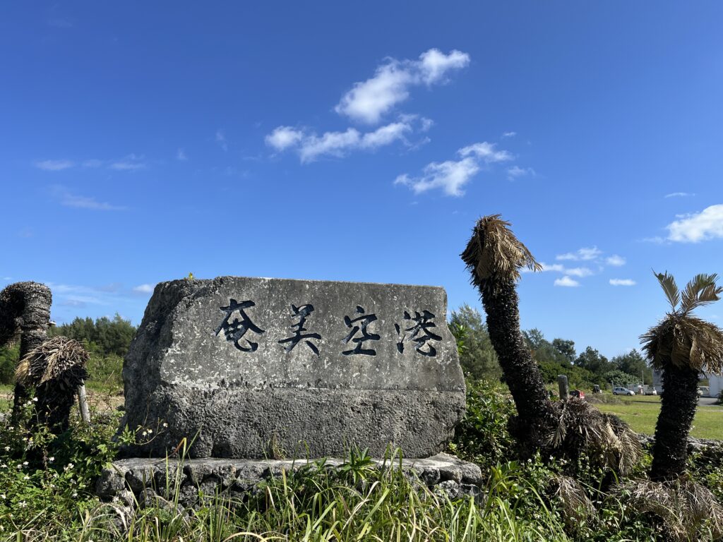 奄美空港に到着の際、 飛行機の窓から見た海はエメラルド色で珊瑚が見えとても綺麗でし た。