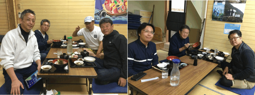 ここでは、 朝に取れた魚が食べれるという事で皆んな楽しみにしていましたが、 前夜から天候が荒れ、波も荒れている状況でしたので、 食べれるかな?と思っていましたが、無事に美味しくいただくことができました。