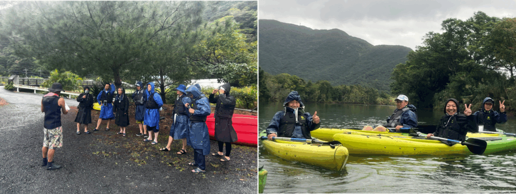 初めてのカヌー体験でしたが、 川の流れと木の匂いで気持ちよくて時間を忘れる程でした。(株) オーシャンズのスタッフの方の支えもあり皆んでカヌーに乗りなが らの記念撮影も出来ました。