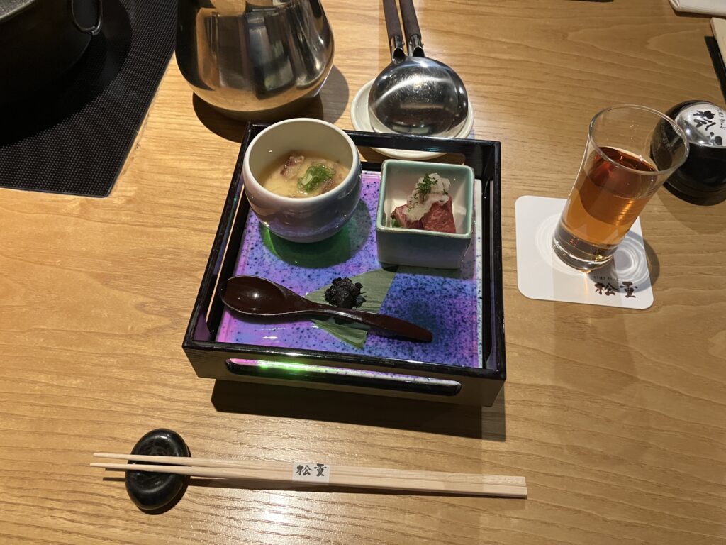 今回は、なんと松阪牛を使ったすきやきとしゃぶしゃぶを贅沢にも同時に楽しませていただきました!