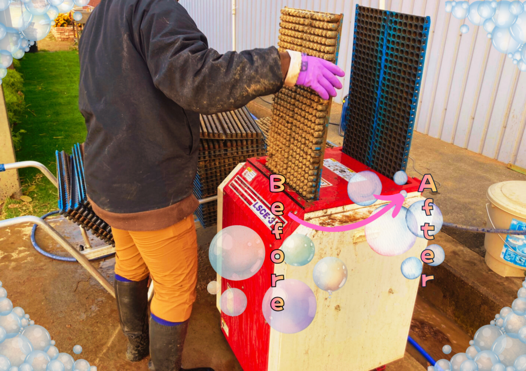 汚れが落ちてピカピカの育苗箱にチェンジしていく姿が、わたしを突き動かす原動力。