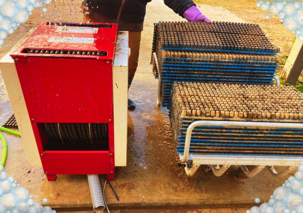 それでも育苗箱(約850枚)をひとつひとつ手で洗ってたらものすごく時間がかかります。