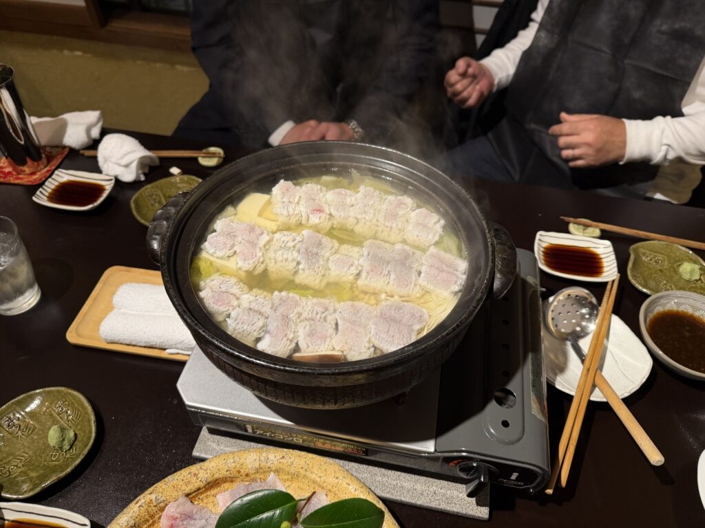 ふんわり美味しく仕上がった鰻のしゃぶしゃぶが出来上がり、特製のポン酢やワサビで頂くのは絶品です。
