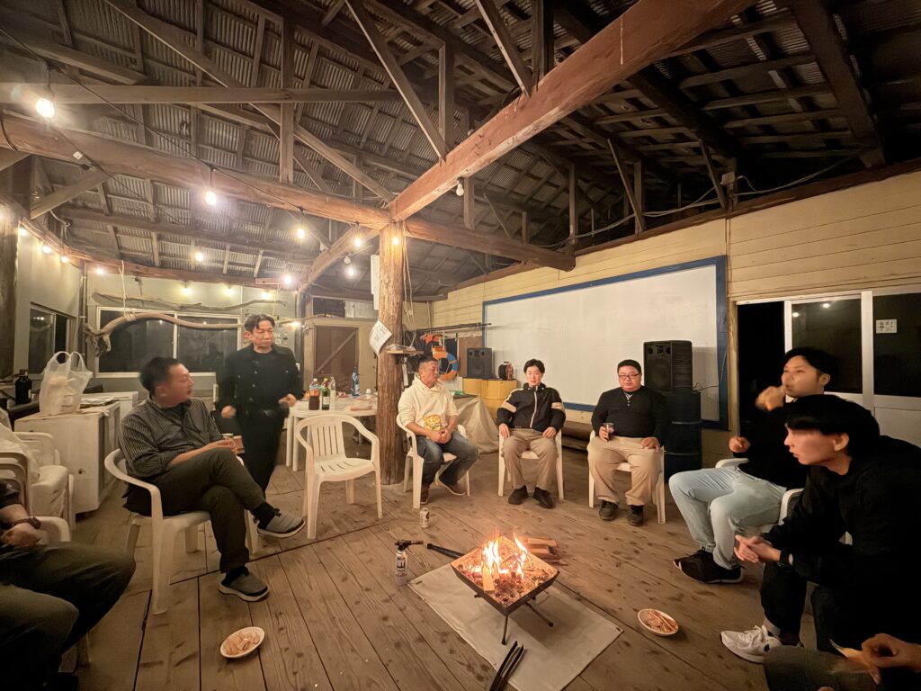 食後は、幻想的な焚火を囲んでのディスカッション。