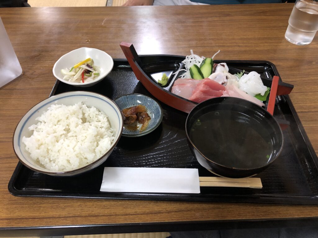 昼食は、お食事処 番屋。島で獲れる新鮮な魚料理をいただきました。