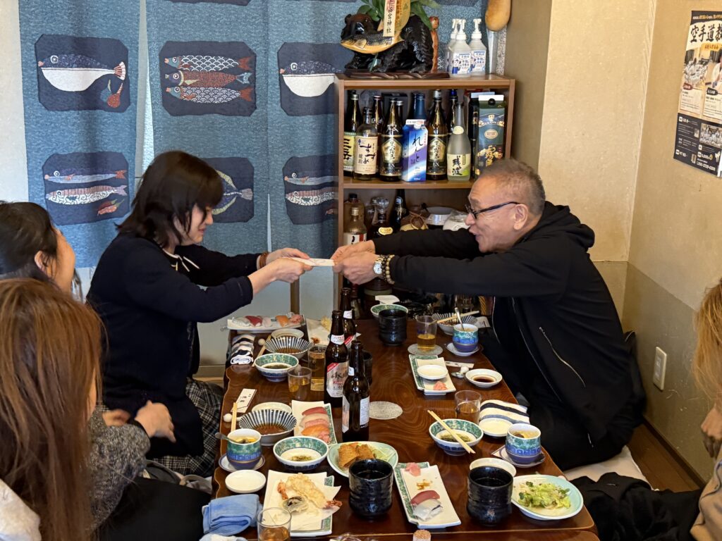 途中には一人ずつ発表する時間もあり、社長からお年玉をいただく場面も。
