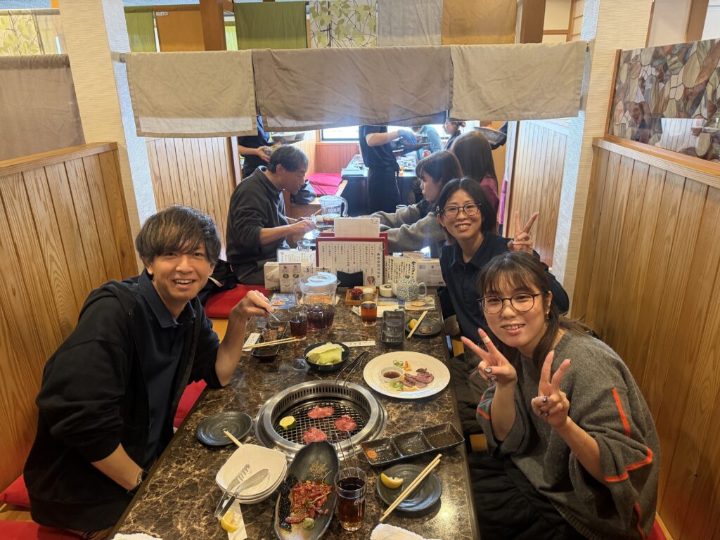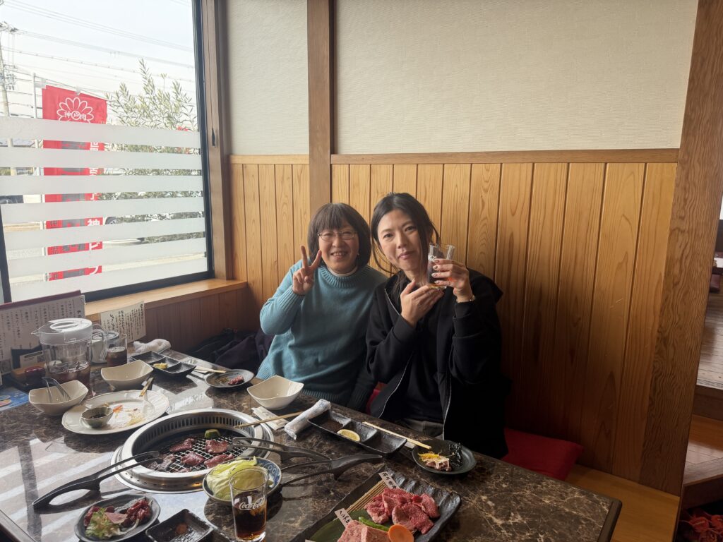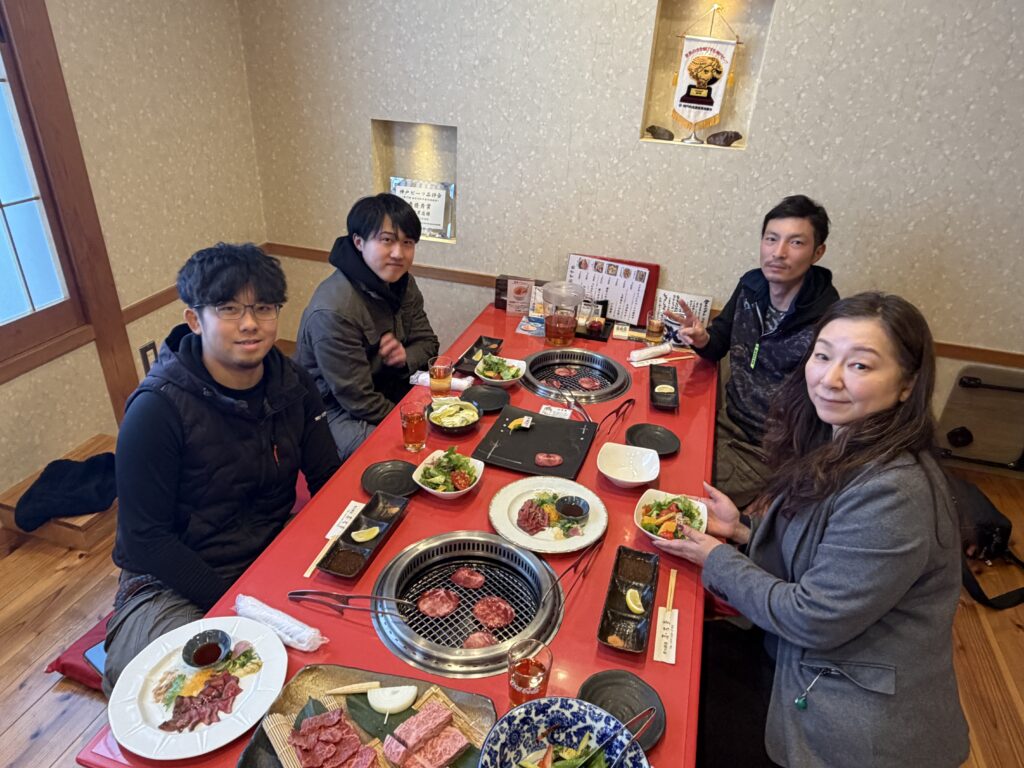料理はサラダ、和牛のタタキ、お肉、スープにデザートとお昼から贅沢なごちそうをいただきました。