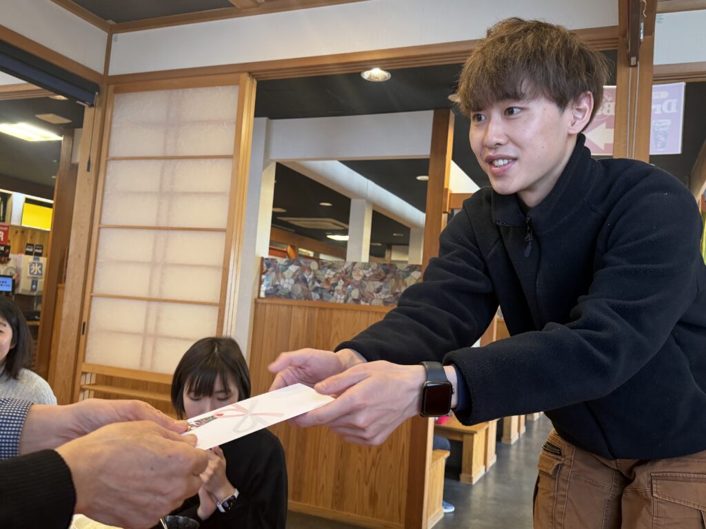 新年を迎え各自が今年の抱負を発表し、社長よりお年玉をいただきありがとうございました。