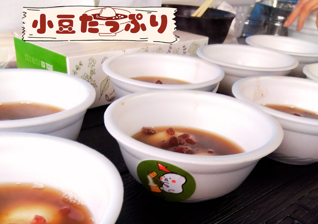 ついでに緑米のPRもできて、一石二鳥のぜんざいイベントです。