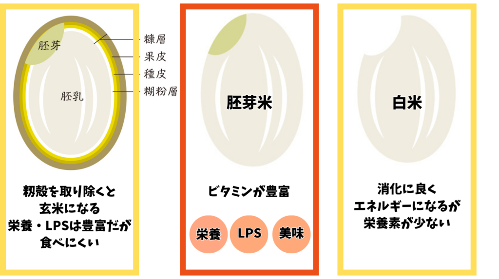 胚芽をできるだけ残すことで、ビタミン・ミネラルをそこなわないお餅に仕上がりました。