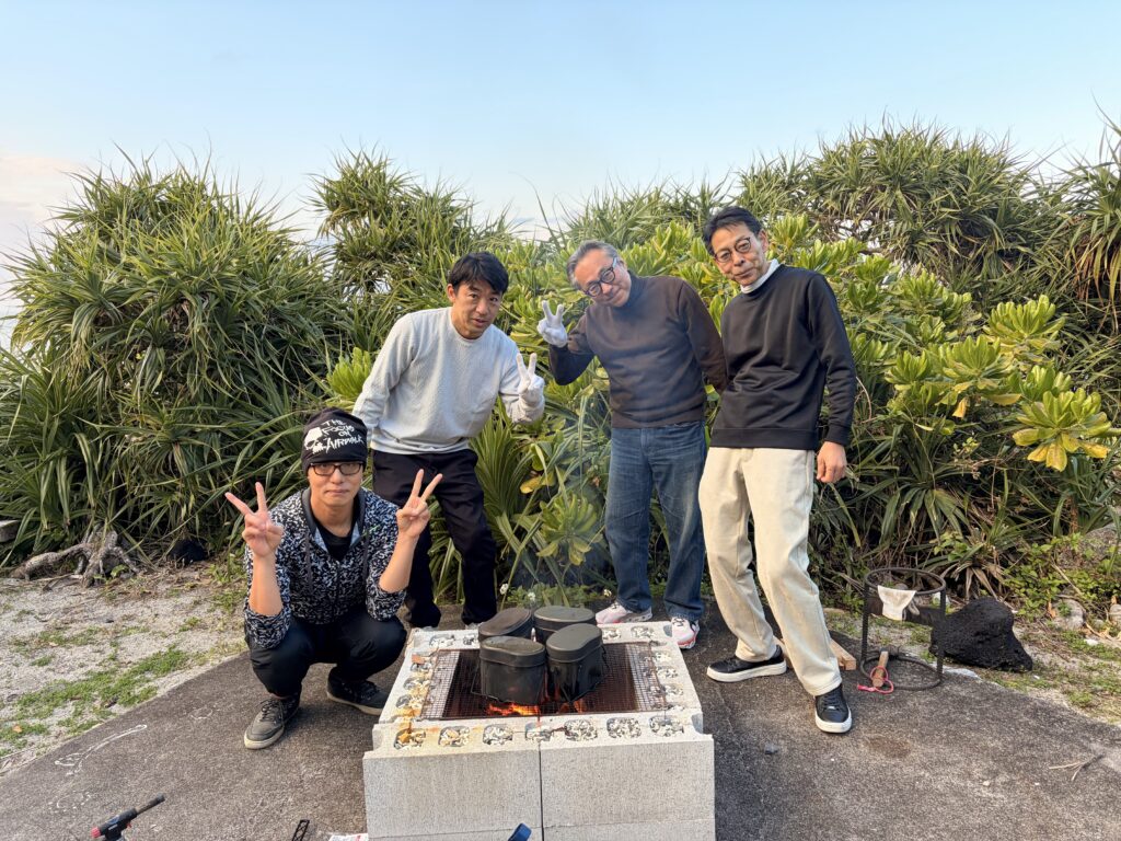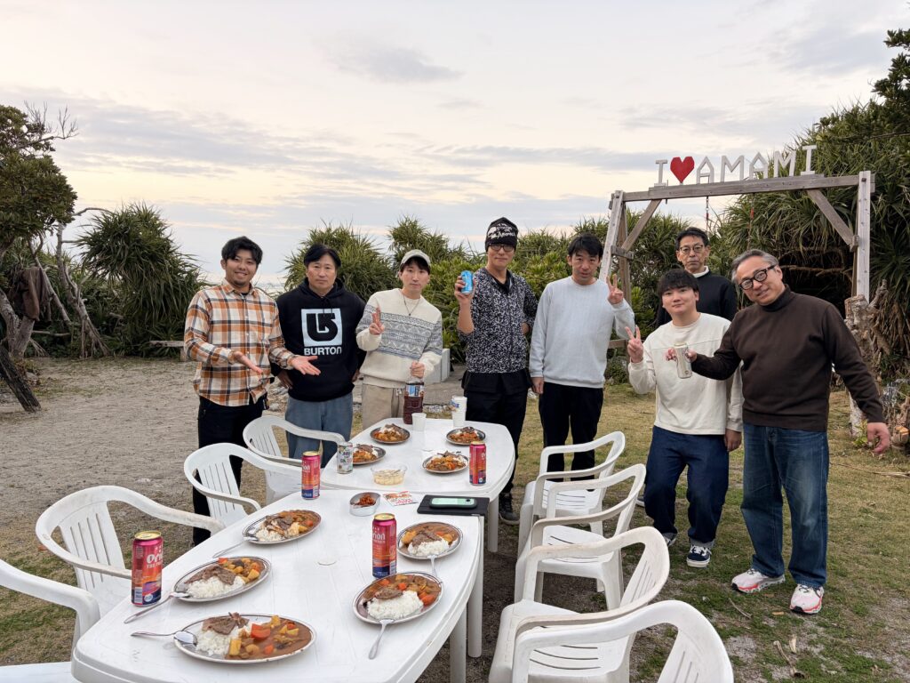 奄美大島の自然の中、8人共同作業の夕食はとても美味しかったです。