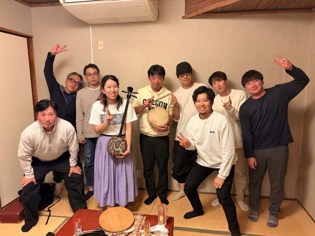 お酒も入り、楽しい一時のあとは、島唄ライブでチーム一丸となり楽しませていただけました。