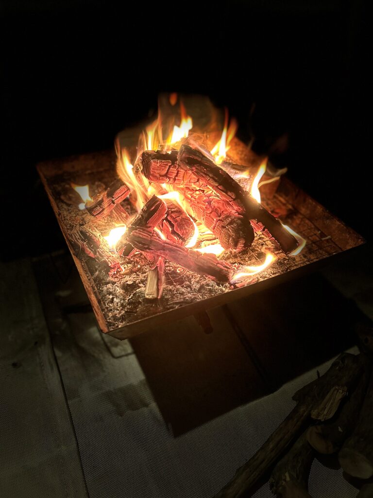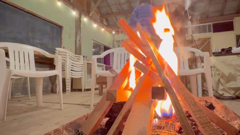 食事後の焚火を囲んでの語らいは遠藤優人社長も交えて各自の自己紹介スタート。