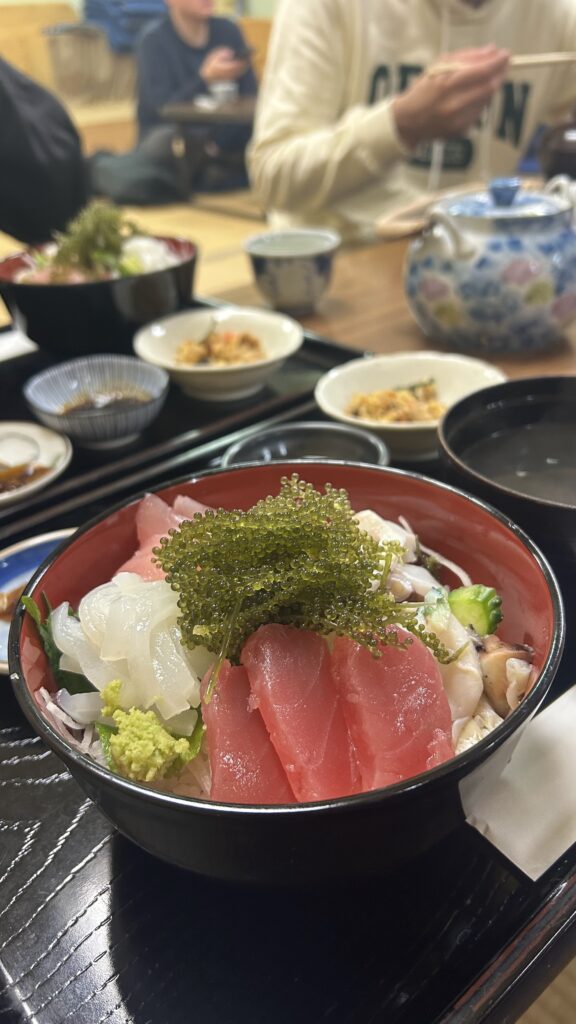 昼食は地域で有名な番屋さんで美味しい海鮮丼など皆でいただきました。