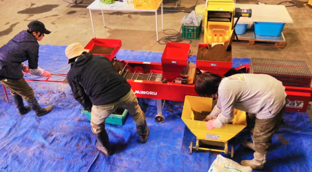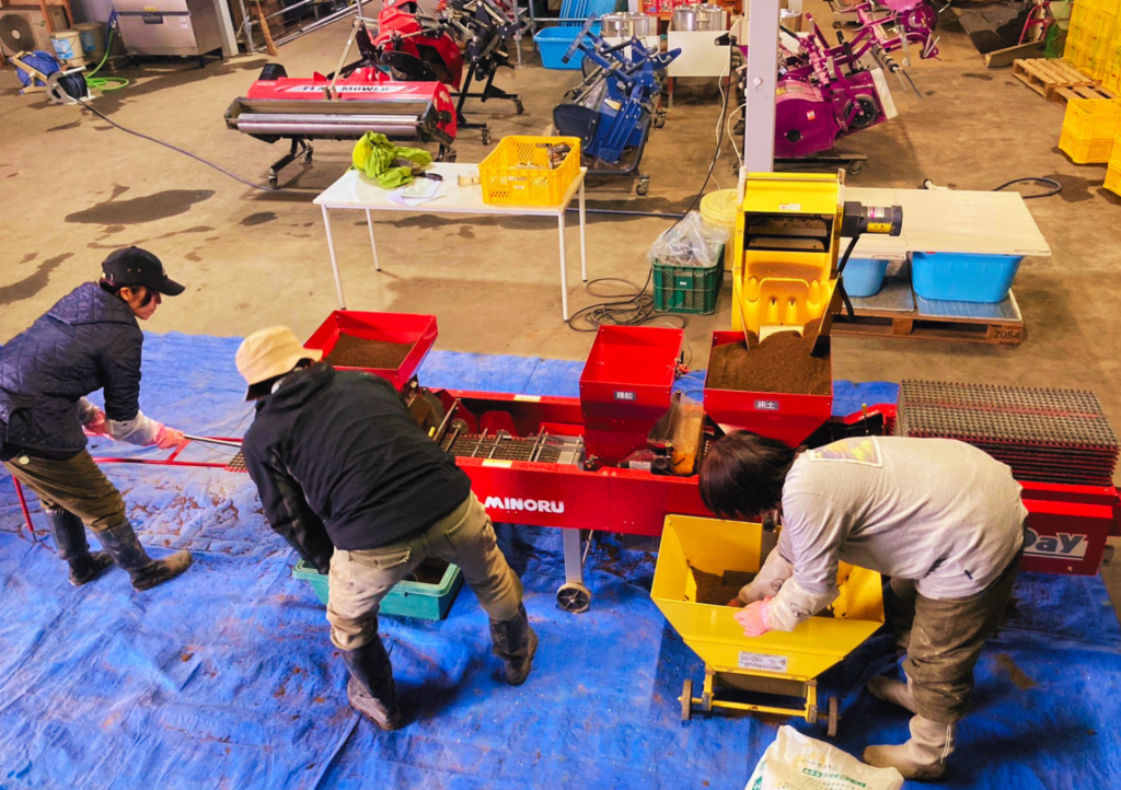 この「握っても手にくっつかなければ、命の火は消えていない」絶妙な乾燥具合が、機械播種をスムーズにする秘訣です