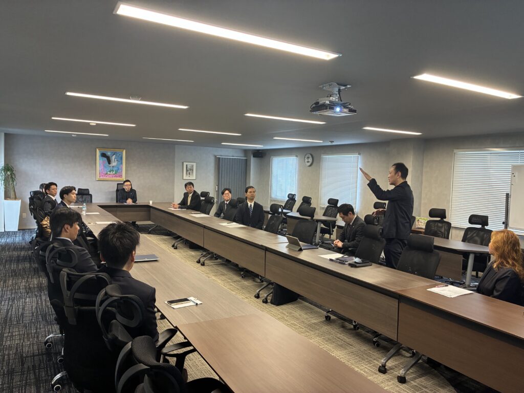 先輩社員や、同期入社社員とともに自己紹介を行い、この会社で頑張っていくという想いを伝えました。