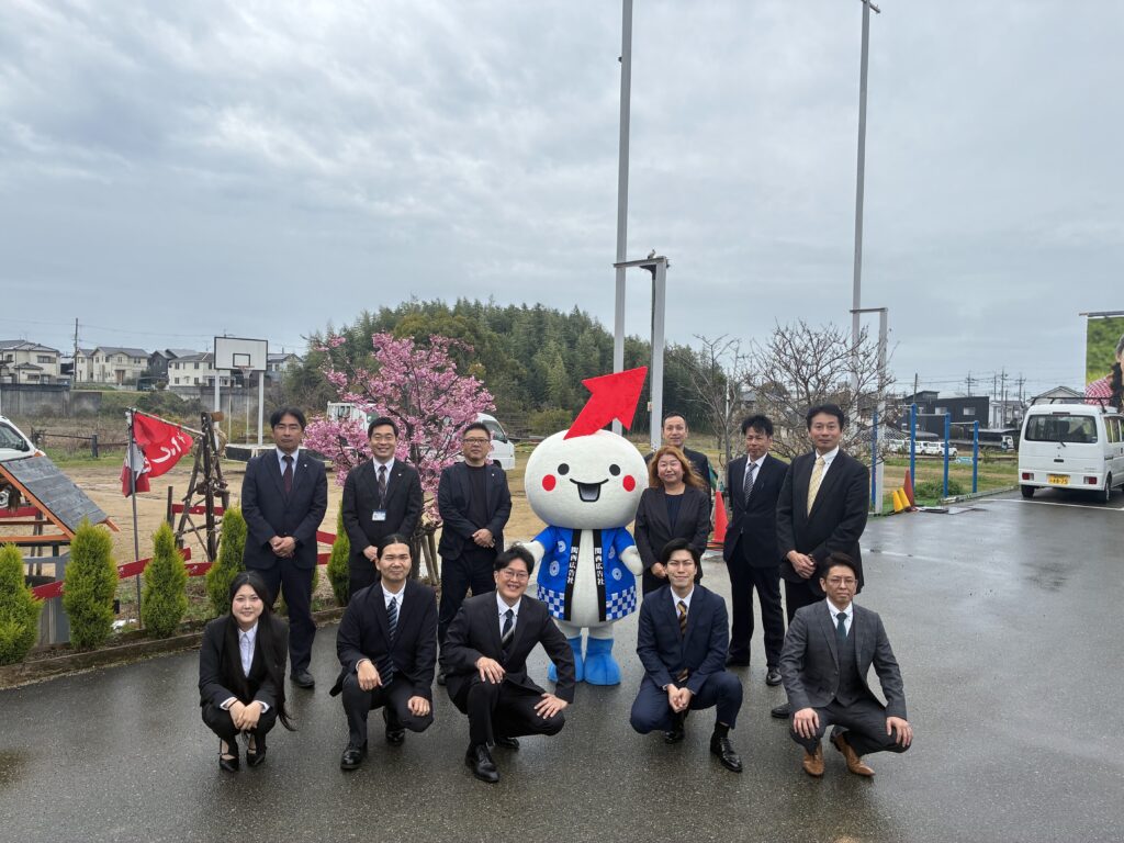 説明後はこっちーくんがサプライズ登場し、みんなで桜の木の前で写真を撮りました。