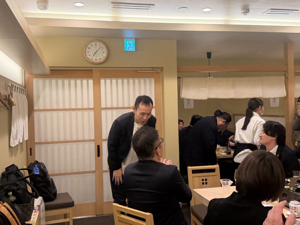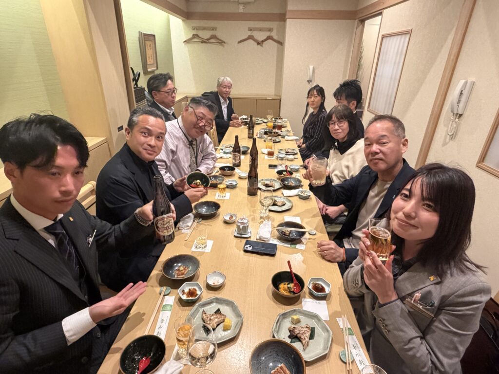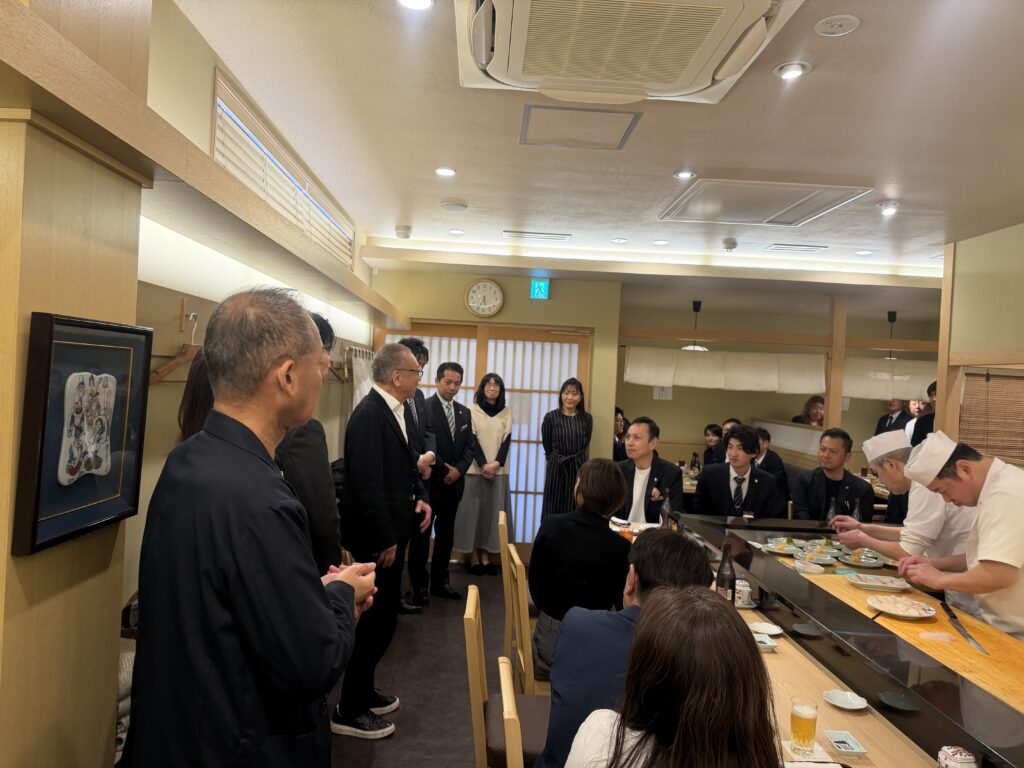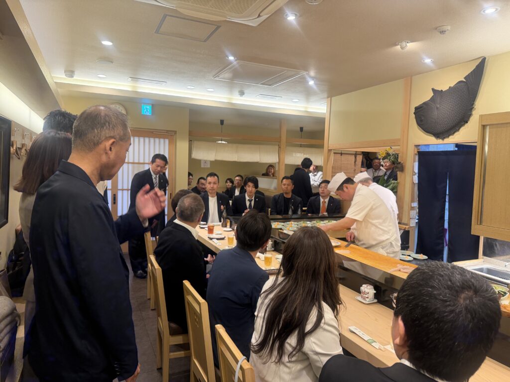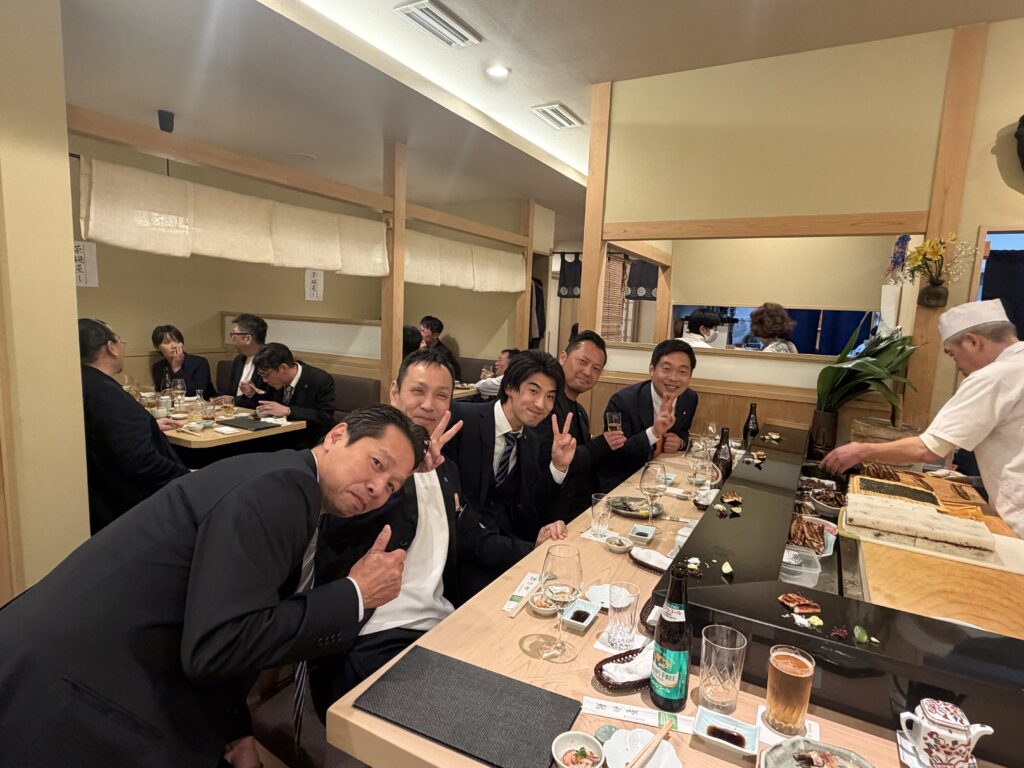 緊張感に包まれた年俸会議の後は、 明石を代表する100年の歴史を誇る名店「菊水鮓」での豪華な食事会。