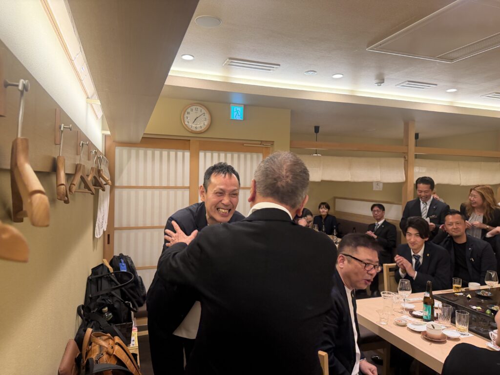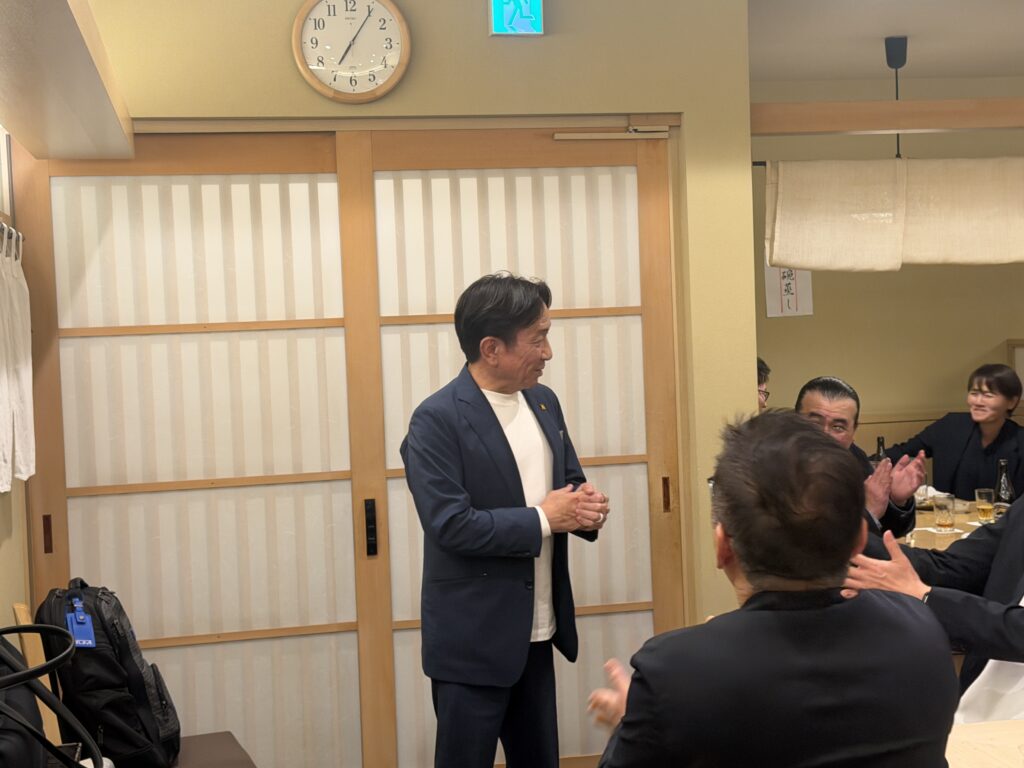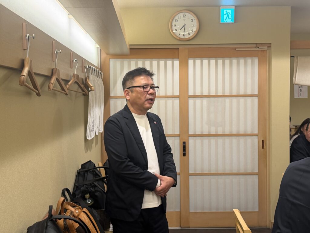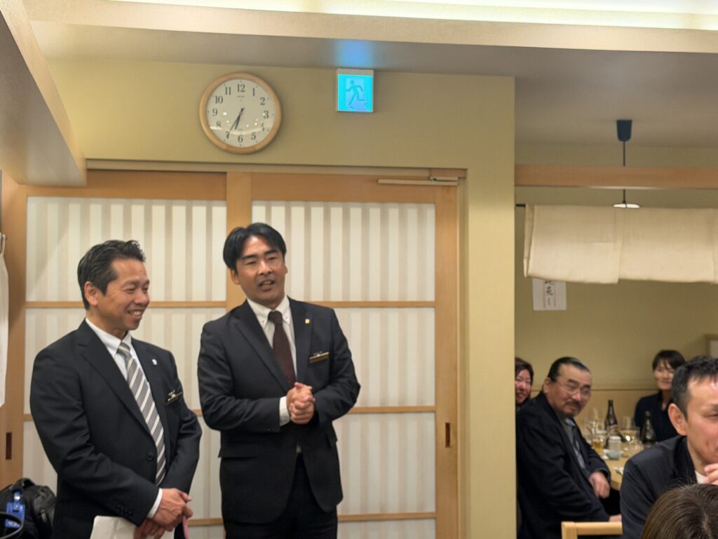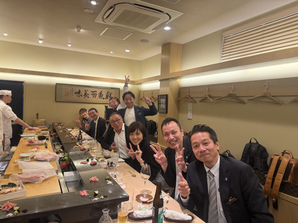 緊張感に包まれた年俸会議の後は、 明石を代表する100年の歴史を誇る名店「菊水鮓」での豪華な食事会。
