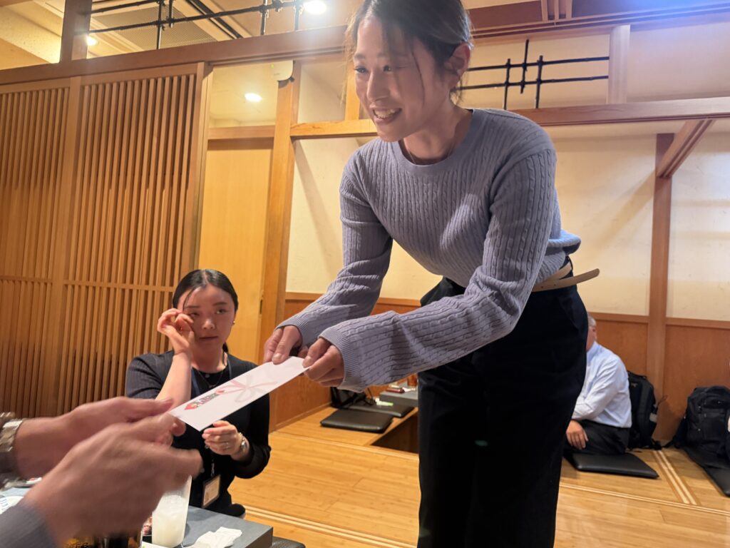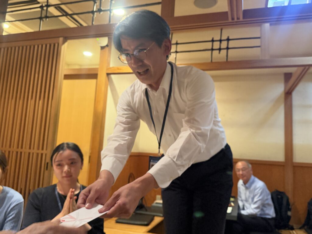社長の冒頭ご挨拶があり達成者4名と全員で聞き入っていました。