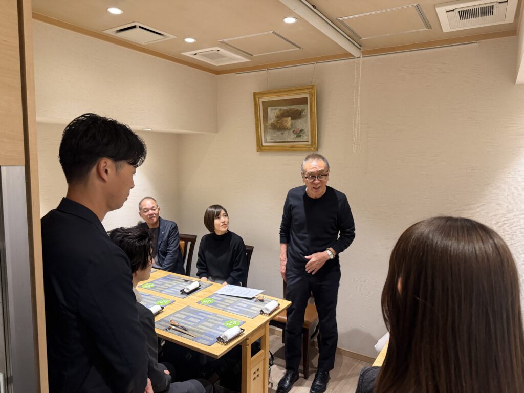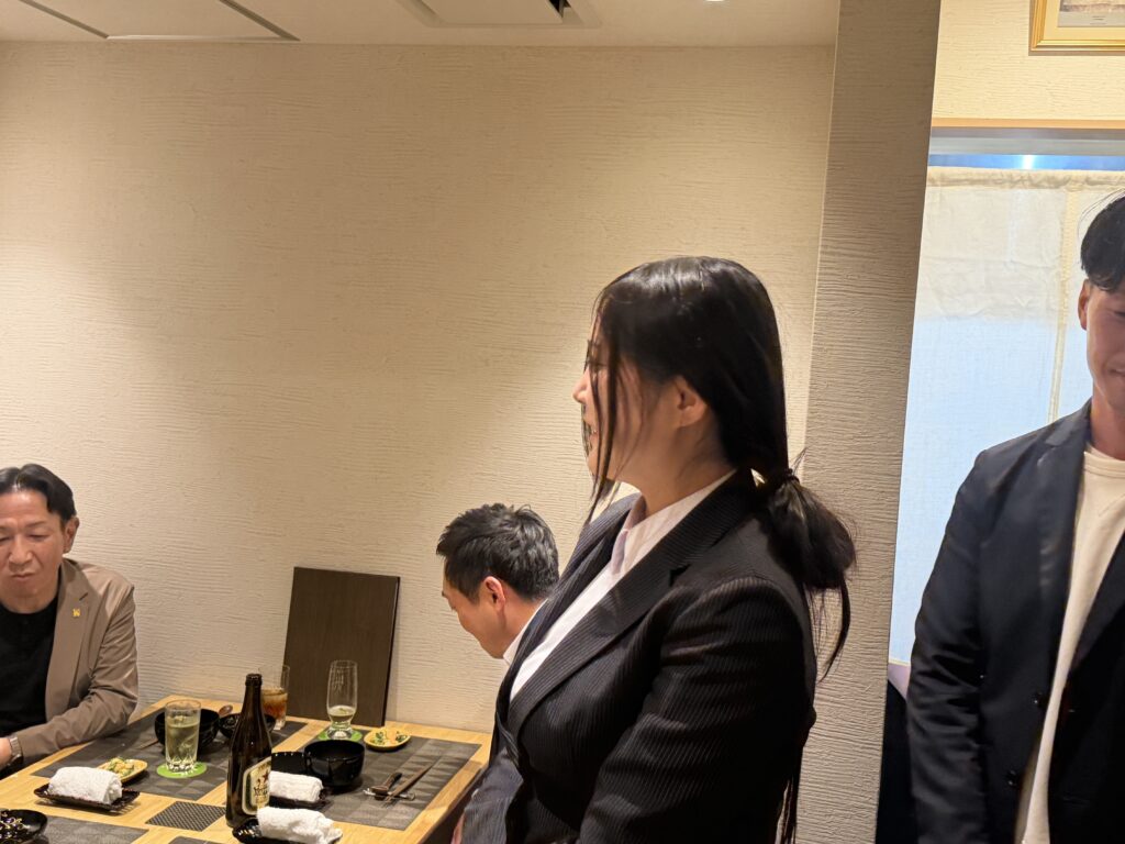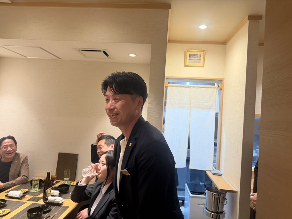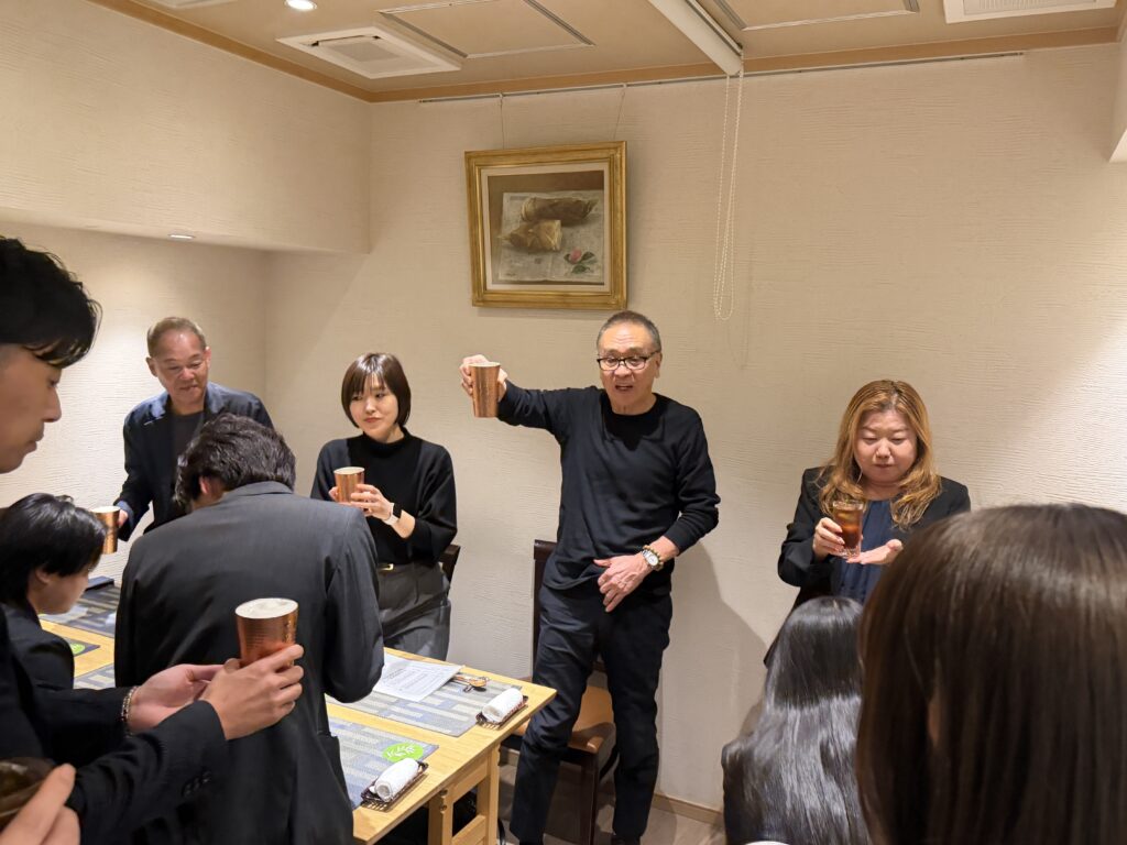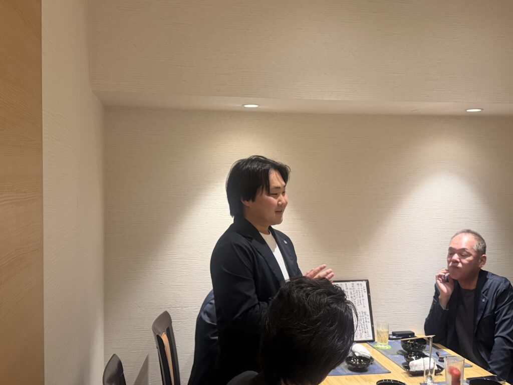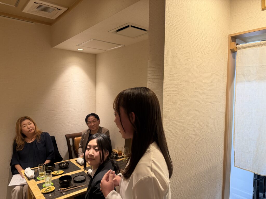 食事会の冒頭では、社長よりマイナビ説明チームへ労いのお言葉をいただき、乾杯とともに会がスタートしました。