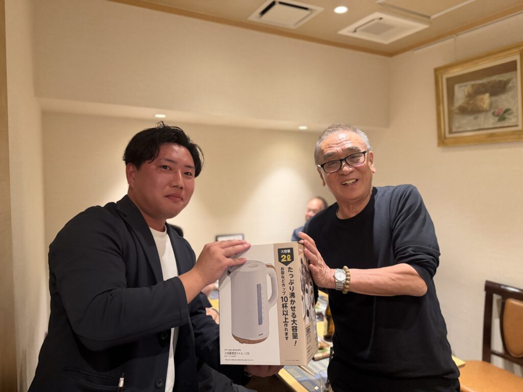 全員のスピーチ終了後には、社長のご厚意により素敵な景品をご用意いただき、くじ引き大会を開催しました。