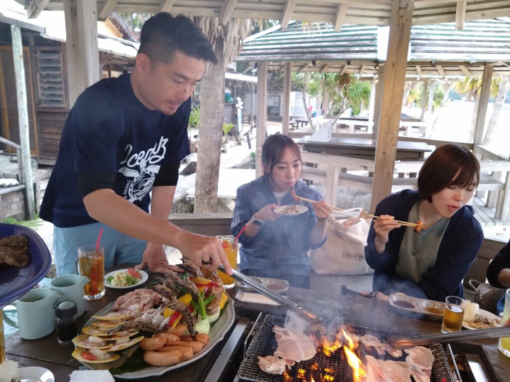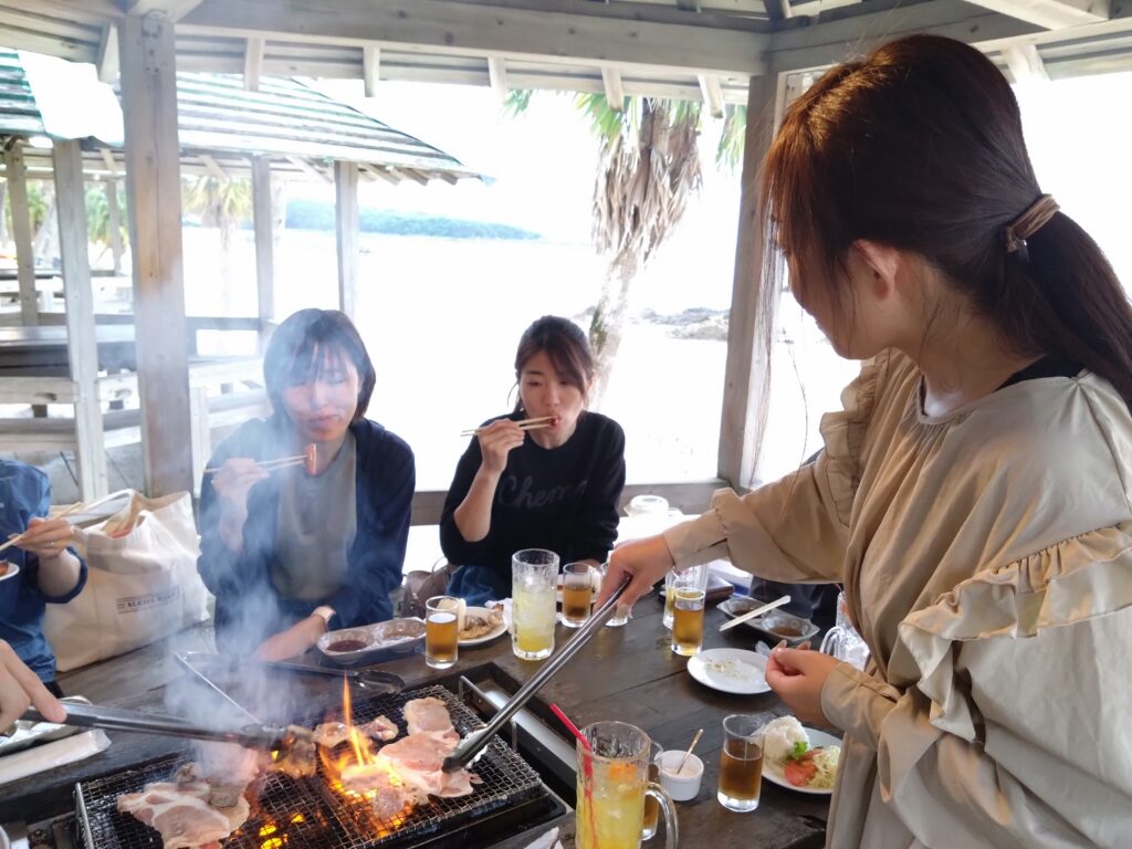 夜は「ばしゃ山」でBBQを楽しみ、みんなで太鼓を叩き踊るなど奄美の文化を体感しました。
